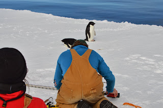 Off to Bandits Hut for a look, located on the edge of a hill, with spectacular views back across to the Plateau then headed North again to Mikkelsen's cairn, Caroline Mikkelsen was the wife of a Norwegian whaling Captain the first female to visit Antarctica who landed there in 1935. Unfortunately the Adelie penguins are nesting on and around the island so access was not possible to the site, however there was still plenty of ice burgs and locals to investigate. We then wove our way back to Davis through the ice burgs on the sea ice arriving back at station at 3.00pm Friday, just in time for the bar to open.